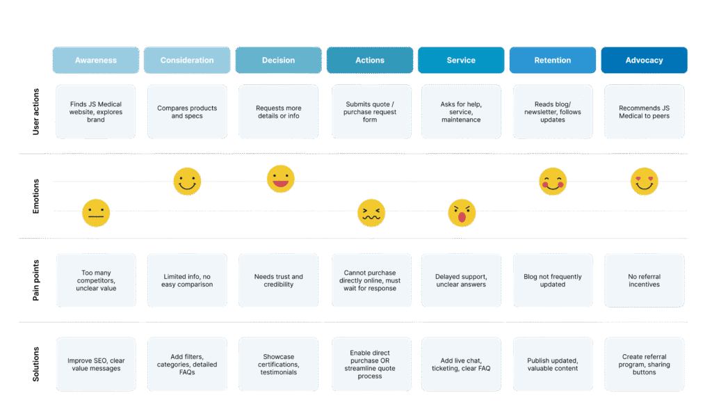 The project delivered a dual-purpose platform that positions JS Medical both as a corporate authority and as a provider of medical technology solutions. On one side, the website strengthens brand credibility by presenting the company’s services, values, and expertise; on the other, it offers a structured and scalable digital catalog with optimized navigation, product sheets, and a streamlined quotation process. By combining corporate storytelling with product discoverability, the platform not only enhances user trust and engagement but also establishes a future-ready foundation for WooCommerce integration, ensuring the catalog can evolve into a fully transactional e-commerce experience.